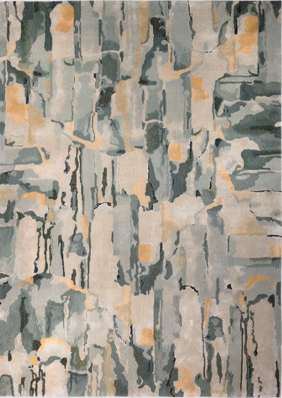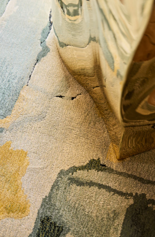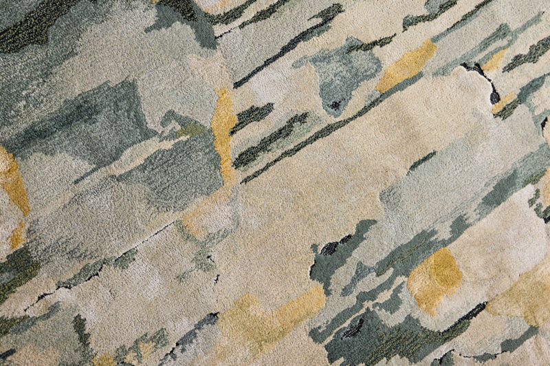 Le dessin se compose de fragments et de variations subtiles, traduisant la richesse et la diversité d’un territoire observé dans son ensemble. Il s’en dégage une sensation de grande douceur, renforcée par la délicatesse des nuances, rendue possible par la technique de tuftage extrêmement précise.