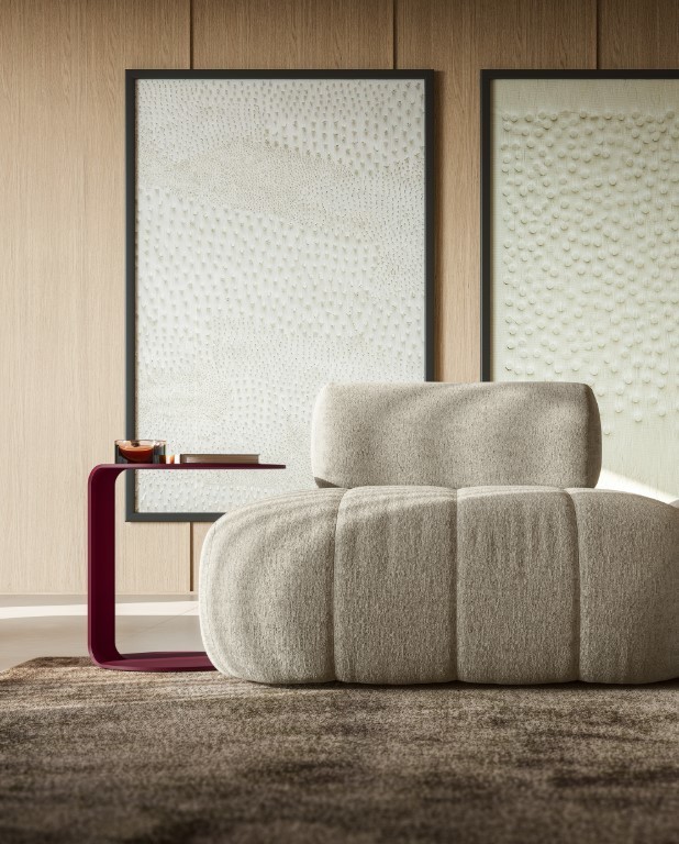 Raggio, une nouvelle approche du canapé. Ses assises aux contours doux accueillent des dossiers qui, grâce à des lestages internes, assurent un soutien stable et confortable. Le capitonnage, disponible en versions verticale ou horizontale, invite à des combinaisons originales, transformant chaque composition en une interprétation unique de la détente.