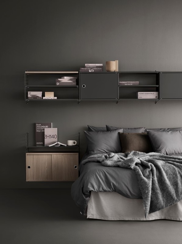 Avec String Furniture, créez une chambre élégante et parfaitement organisée. Grâce à son système modulable, composez des chevets intégrés, étagères aériennes et bibliothèques murales qui structurent l’espace avec légèreté.