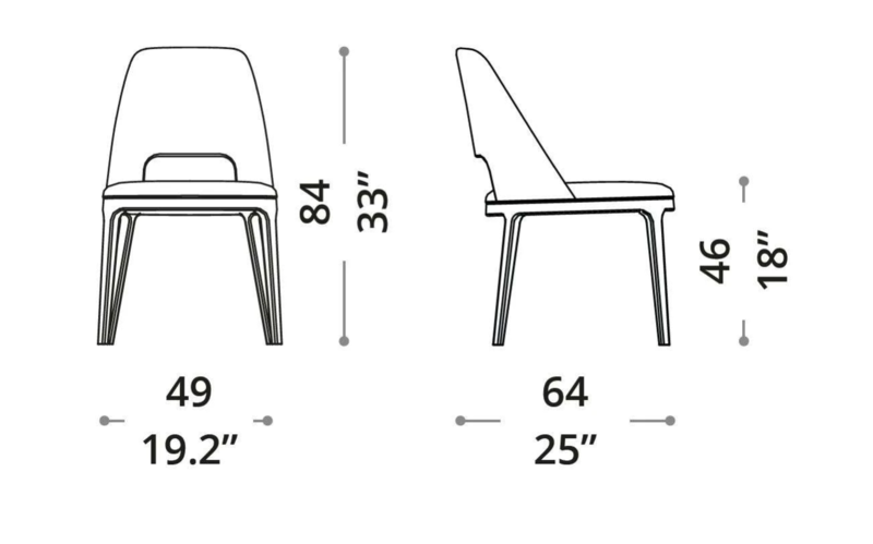 Chaise avec dossier rembourré et siège en différentes finitions éco-cuir ou tissu.