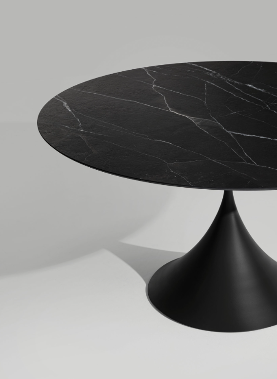 Avec la collection Leo, le designer Paolo Vernier réinterprète l’archétype de la table à pied central en adoptant une approche radicale de la réduction formelle. Le fût central, réduit à seulement 26 mm de diamètre, relève un défi technique audacieux : garantir légèreté visuelle et solidité, même avec des plateaux en marbre. Grâce à ses lignes épurées et ses proportions équilibrées, Leo devient une collection polyvalente, adaptée à des contextes variés, du résidentiel au contract. Son design discret permet des associations harmonieuses avec des chaises de styles différents. Les plateaux, extrêmement fins sont proposés dans divers matériaux. Leo incarne l’excellence du design italien dans sa forme la plus essentielle.