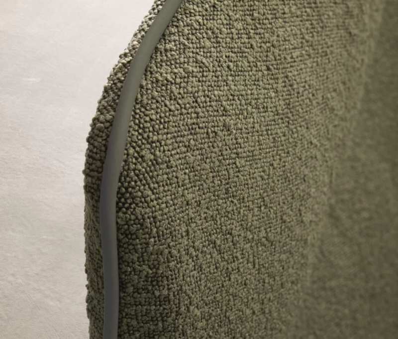 Le rembourrage de la tête de lit est enrichi de fines coutures horizontales et fini sur les bords, tout le long du périmètre, par un cordon en éco-cuir qui accentue la douceur des lignes.