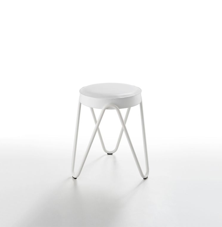 Avec Apelle Jump, l’idée est d’allier légèreté visuelle et confort, la structure métallique fine contraste avec l’assise douce, donnant un tabouret qui semble à la fois solide et délicat, presque suspendu.